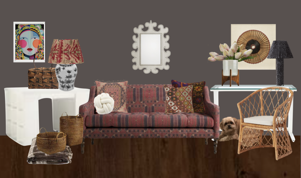 The room is very captivating! I see elements and textures of different countries speaking to me. This theme suits the space all year around. Excellent Job!!